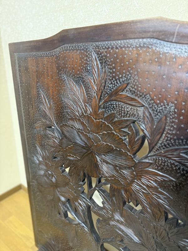 衝立 透かし牡丹